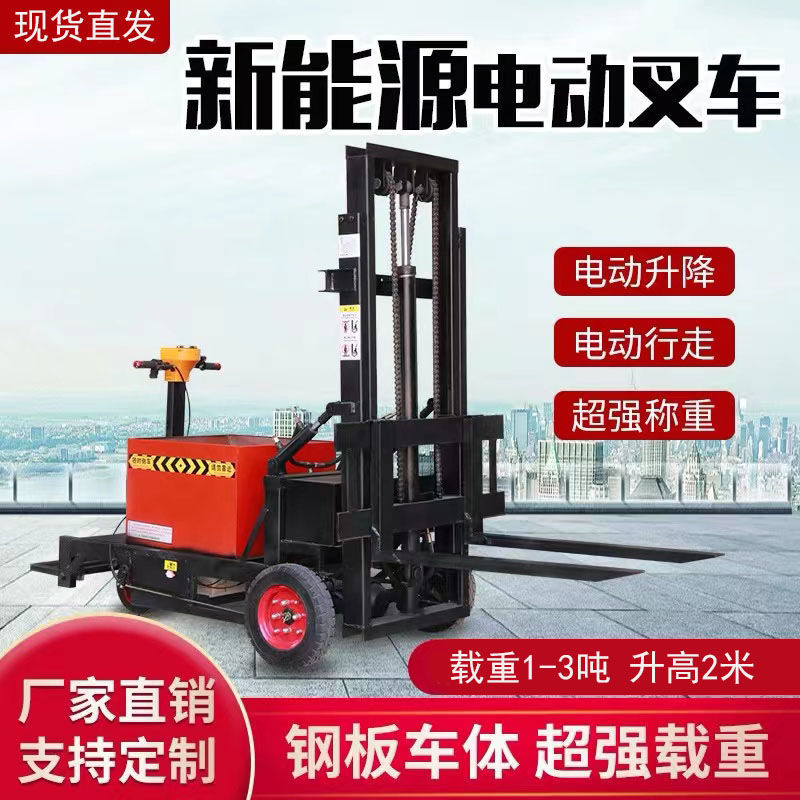 海伦市小型电动叉车1吨站驾式2吨液压升高铲车全自动仓储堆高车